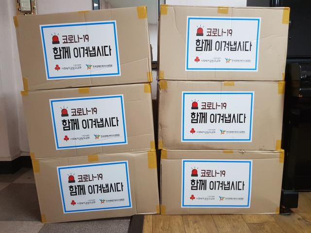 한국장애인복지시설협회에서 코로나19 확산 방지 및 예방을 위한 긴급 배분 사업으로 1차 배분하여 물품 수령하였습니다. 손소독제 살균소독제 세탁세제 바디로션 핸드크림 손소독티슈 라텍스장갑 화장지 키친타올 등으로 구성된 키트박스를 지원받았습니다. 원내 방역을 위해 잘 사용하겠습니다. 감사드립니다. |