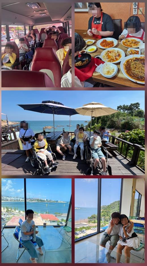 중증 이용자들로 직접적인 물놀이는 어려웠으나 바다 뷰가 보이는 맛집 식당 예약을 통해